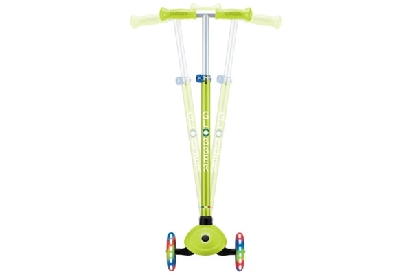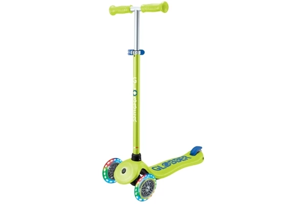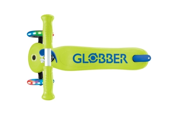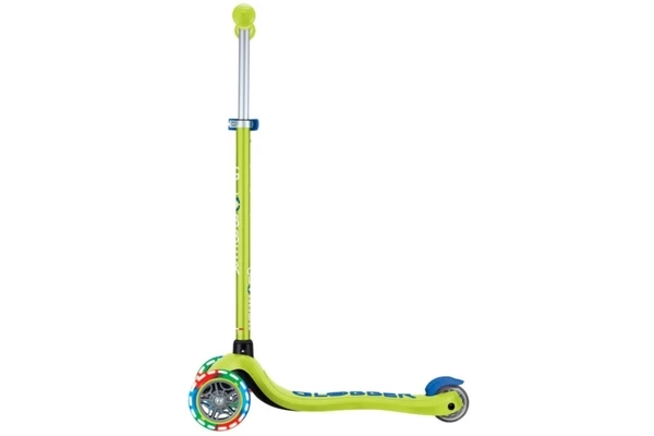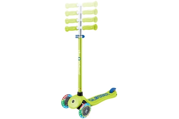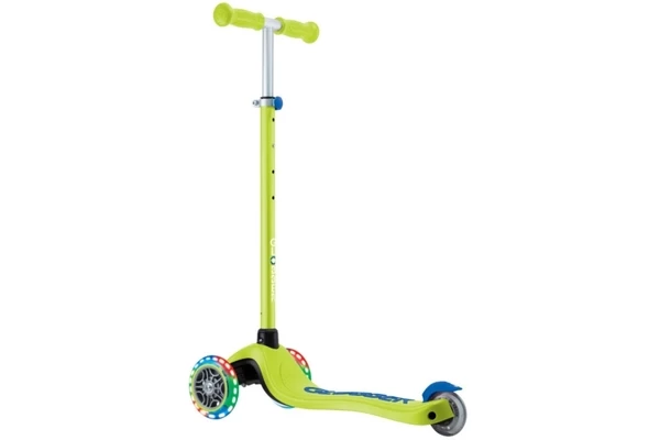 Deze knalgroene step groeit met je mee! Al geschikt voor kinderen vanaf 3 jaar, maar dankzij het verstelbare stuur (67,5-82,5 cm) kan hij lang mee. Is steppen nog lastig? Gebruik het inschakelbare stuurslot zodat de step alleen voor- en achteruit kan. Wanneer de balans beter is ontwikkeld kan er gestuurd worden door het slot eraf te halen. Het board heeft een antislip-laag en kan tot 50 kg dragen. Opvallend zijn de gekleurde LED lampjes in de wielen die oplichten tijdens het rijden.